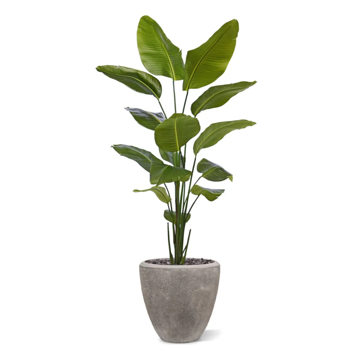 De Kunst Strelitzia Nicolai is de perfecte keuze voor wie houdt van tropische planten, maar geen tijd heeft voor het onderhoud van echte exemplaren. Met zijn grote, uitgesproken bladeren en opvallende verschijning is deze plant ideaal voor grotere ruimtes, zoals een woonkamer, hal of kantoor. Geniet van de exotische uitstraling zonder het gedoe van water geven of snoeien.